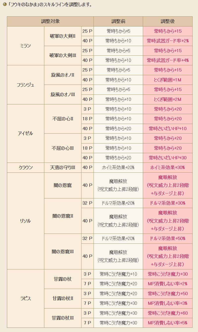 ・仲間のスキルラインが調整されて、強化されている