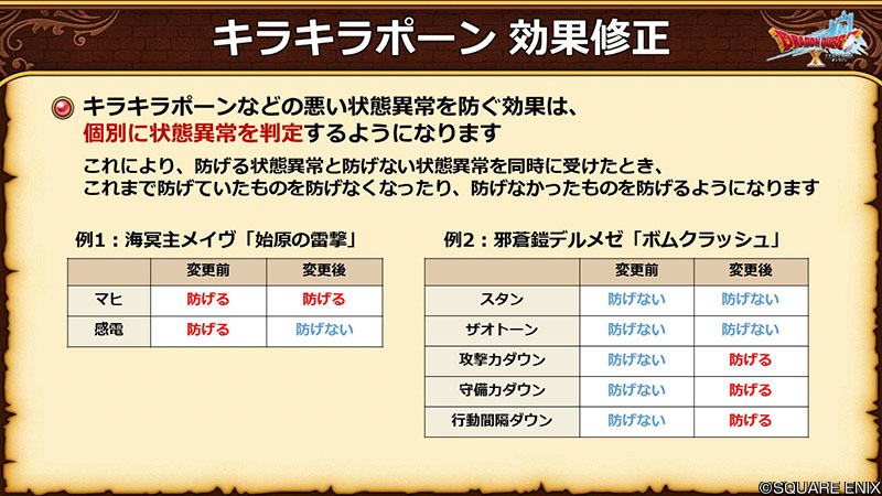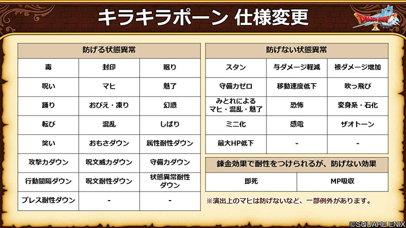 ・Ver6.4までは「ブレス耐性ダウン」がキラポンで防げなかったが、Ver6.5からは防げるように変更された