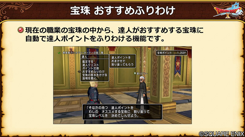 ・1日1回、達人から「宝珠の香水」の効果を掛けてもらえる