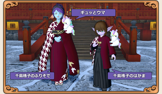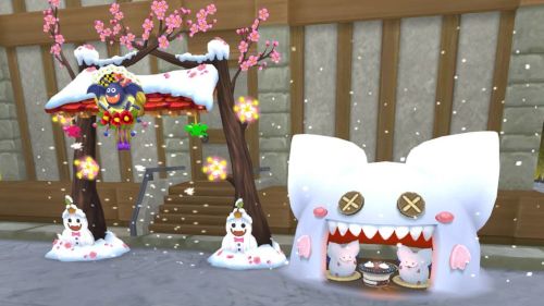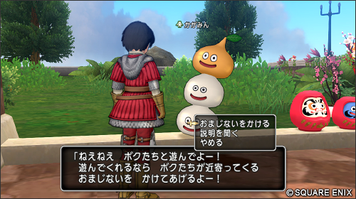 ・「おまじない」効果中にモンスターと戦闘すると、お供として「スライムかがみもち」が出現。冒険者全員で倒した数に応じて、報酬が貰える
