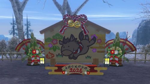 ・リアル時間の 1月1日00:18頃に、特別な演出付きの「初日の出」が出現する。撮影チャンスは、この時間だけなので、お見逃しなく