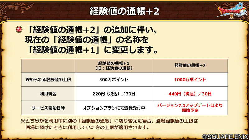 ・簡単に言うと、貯められる経験値の上限が2倍になった通帳。但し、料金は2倍