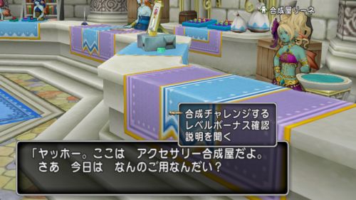 アクセサリー合成に関する様々な操作は、ヴェリナード城下町 のアクセサリー屋に居る 合成屋リーネ にて行う