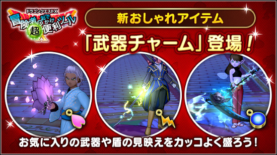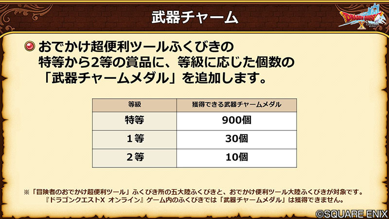 ・便利ツールふくびきで「武器チャームメダル」を集めて、交換して入手できる