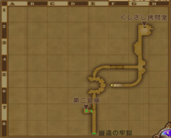 大神殿・地下 全体MAP > ナドラガンド > 炎の領界 > 聖都エジャルナ > ナドラガ教団大神殿 大神殿・地下_1階 黒宝箱(A4):黄の錬金石 x3 黒宝箱(E1):スライダークカード 【生息モンスター】 LV 67 HP 1283 亡者のひとだま エレメント系 出現 1匹 EXP 535(特訓-) ドロ 氷の樹木青い宝石 LV 91 HP 3089 やみのしょくだい 物質系 出現 1匹 EXP 1386(特訓2) ドロ つけもの石ナイトメアリーフ 大神殿・地下_2階 【生息モンスター】 LV 67 HP 1283 亡者のひとだま エレメント系 出現 1匹 EXP 535(特訓-) ドロ 氷の樹木青い宝石 LV 91 HP 3089 やみのしょくだい 物質系 出現 1匹 EXP 1386(特訓2) ドロ つけもの石ナイトメアリーフ LV 91 HP 3011 ロードコープス ゾンビ系 出現 1匹 EXP 1567(特訓2) ドロ よごれたほうたいよるのとばり