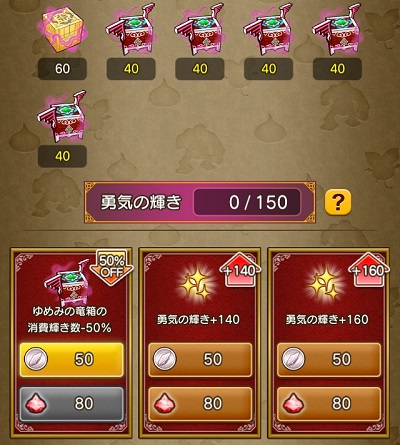 | 勇気の輝き ○増加 | 140増加、160増加、180増加 |